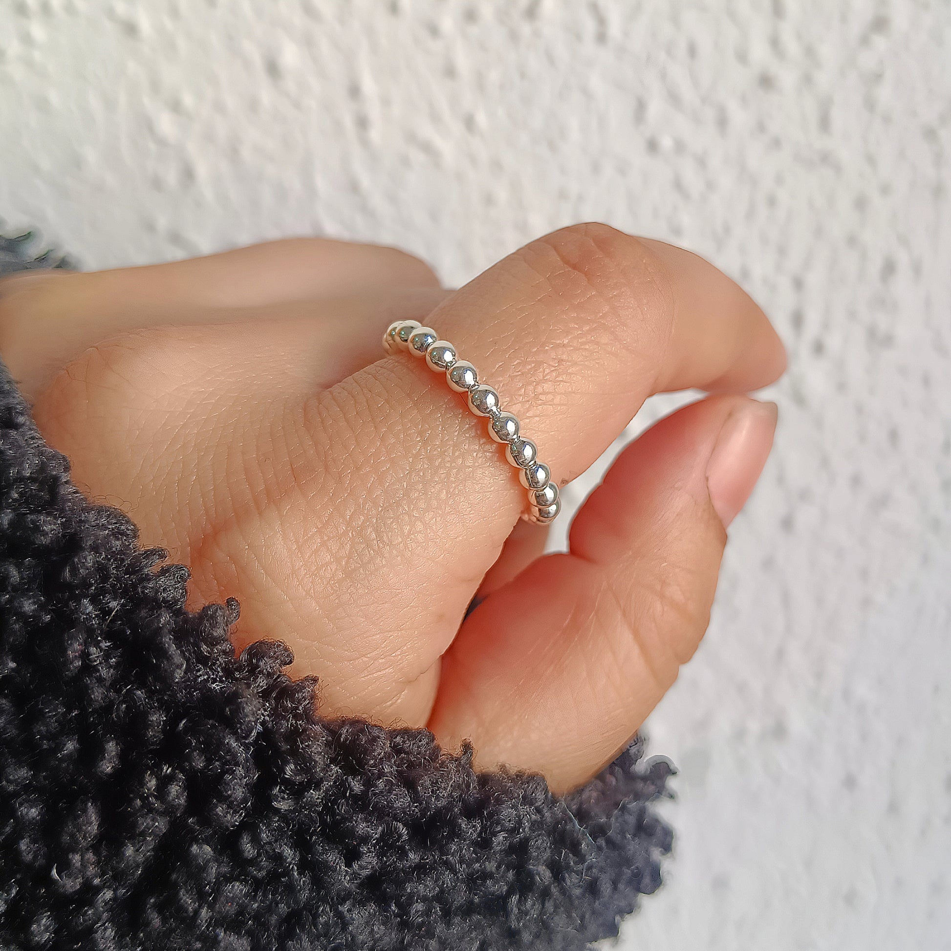 Anillo antiestrés en Plata 925 con delicadas esferas móviles. Diseño elegante y funcional, ideal para mantener tus manos ocupadas y relajar la mente con estilo.