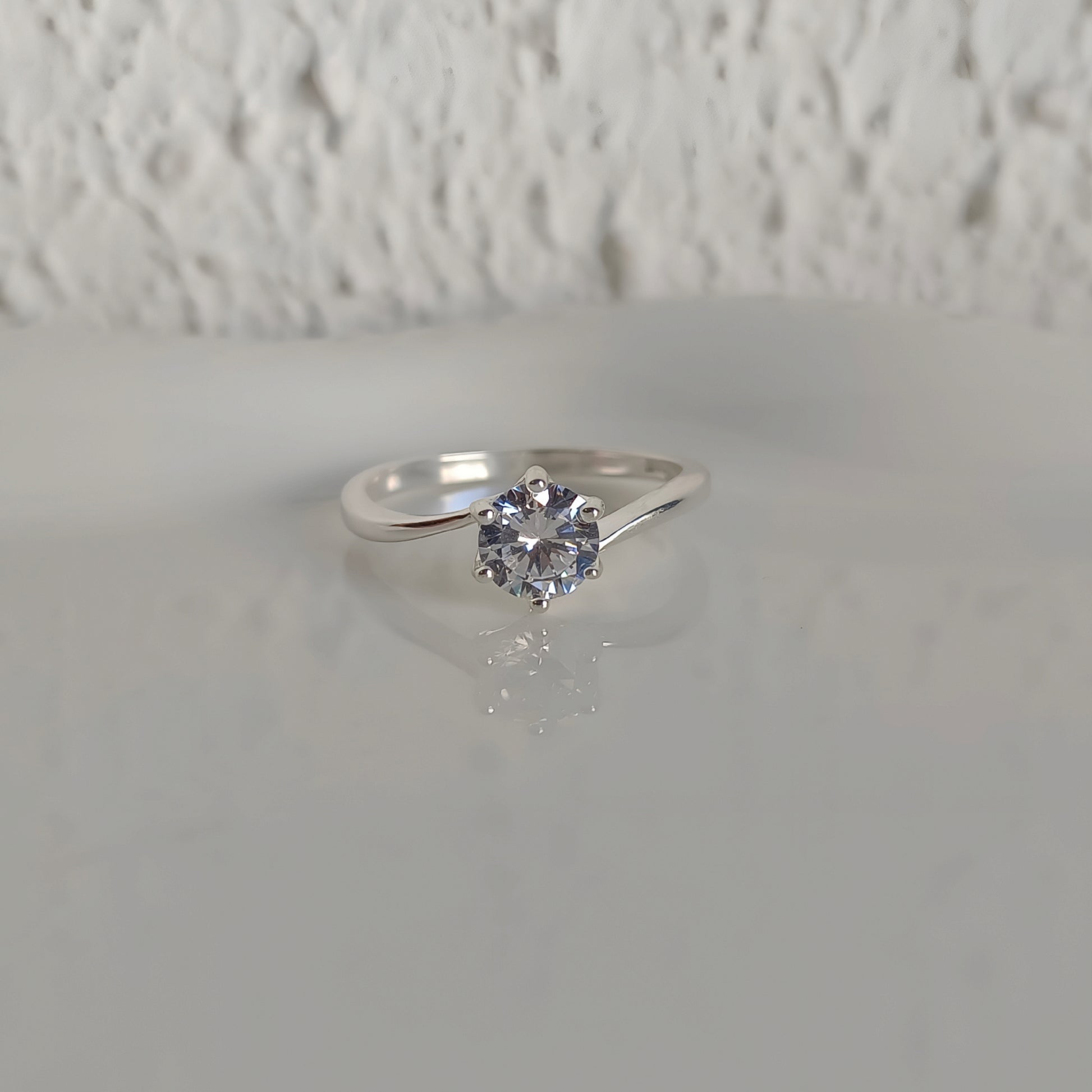 Anillo solitario en plata 925 con circón brillante engastado en seis puntas. Elegante, delicado y perfecto para cualquier ocasión.