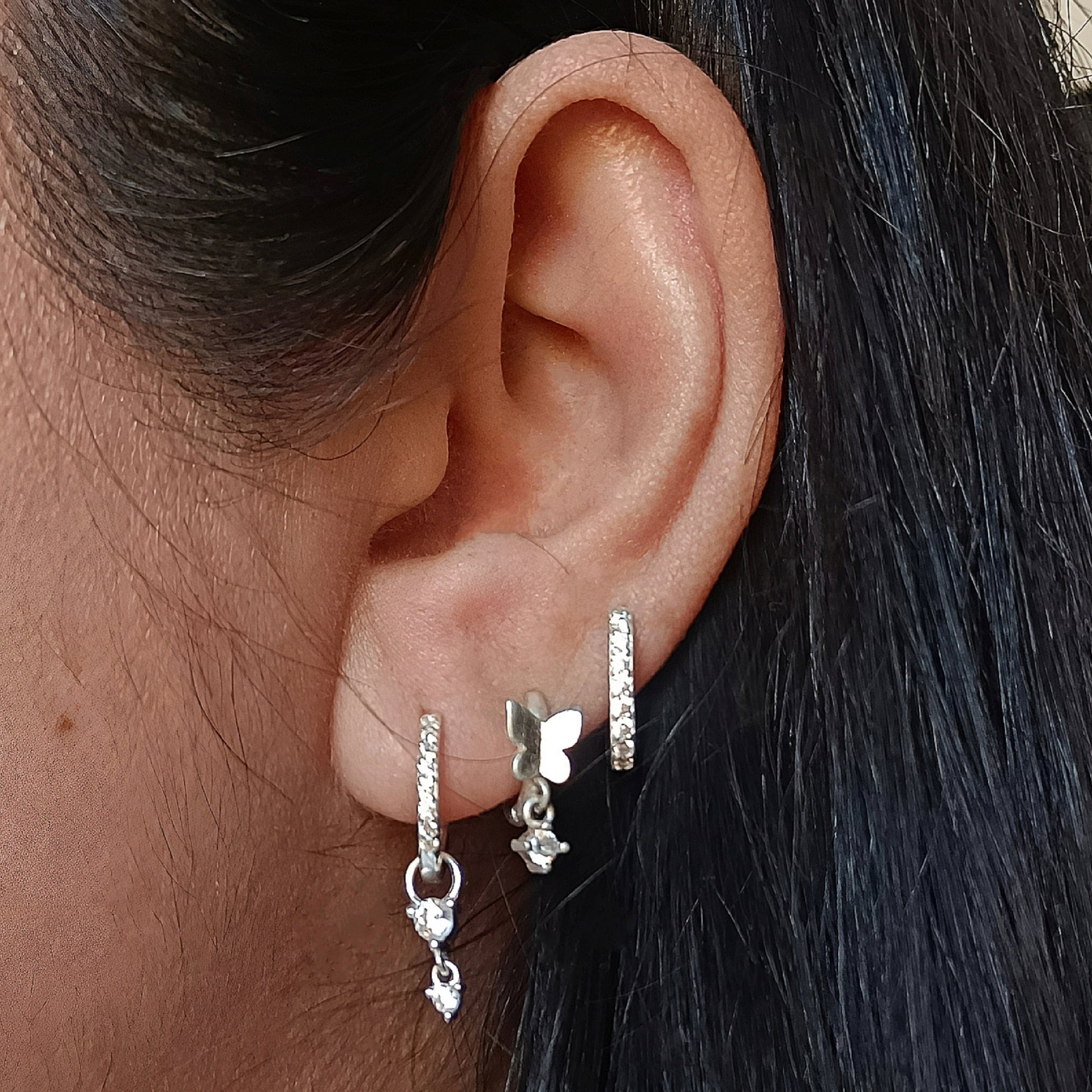 Argollas huggies en Plata 925 con circones y dije colgante de corazón. Un detalle delicado y romántico para tu día a día.