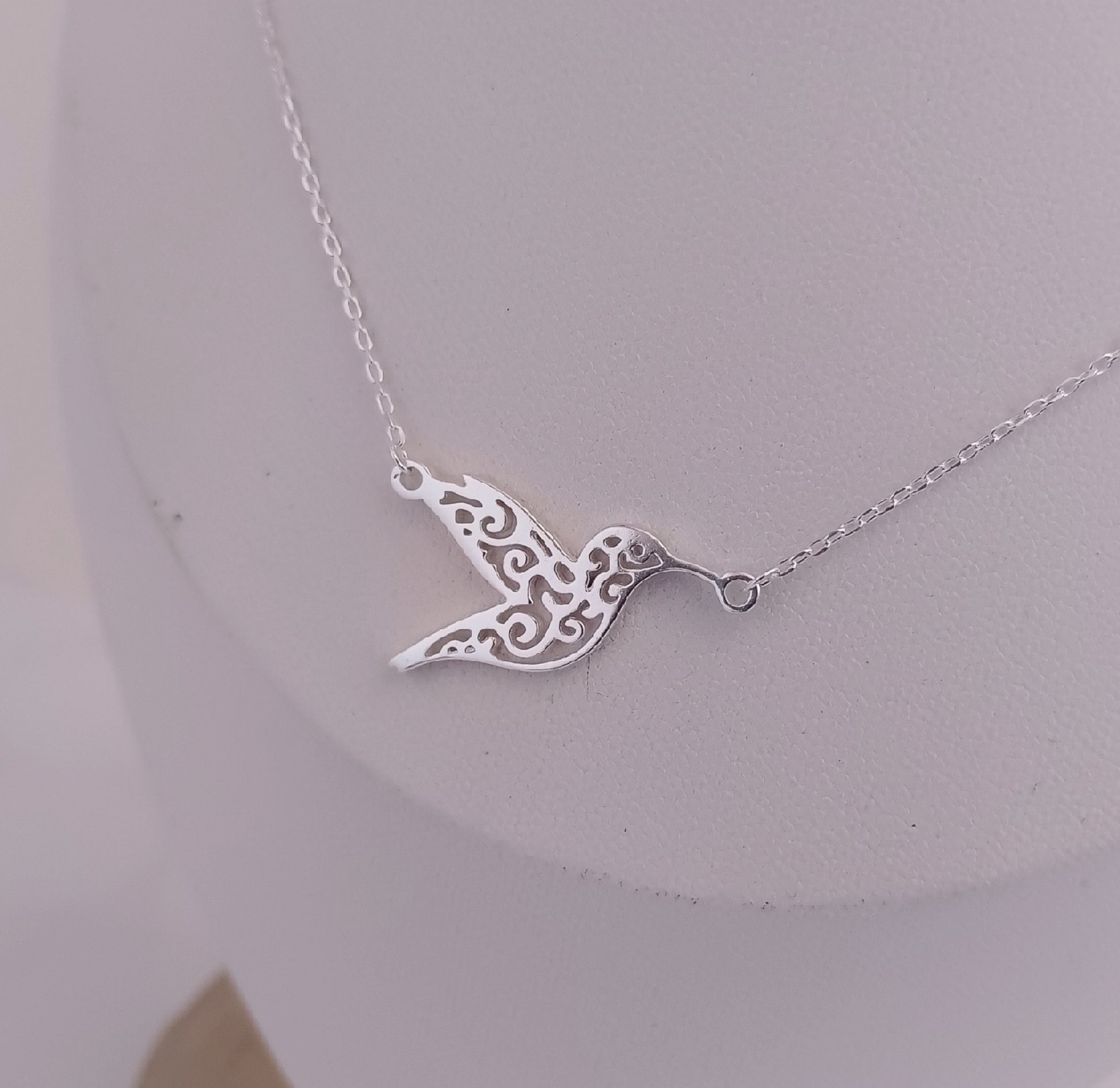El collar Colibrí en Plata 925 auténtica es un amuleto de ligereza, libertad y buena energía. Su diseño delicado lo hace perfecto para usar todos los días o regalar a alguien especial.
