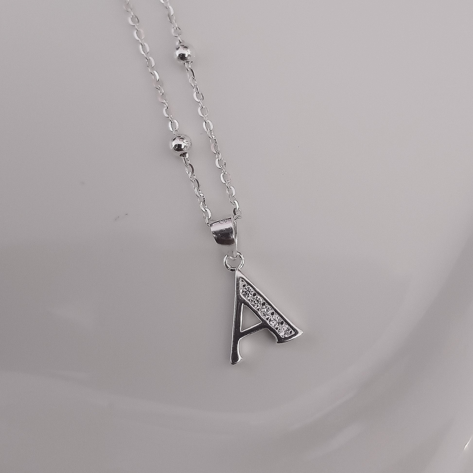 El collar letra A es parte de nuestra colección más especial, pensada para acompañarte con significado. Hecho en Plata 925 y adornado con finos circones brillantes, este collar es perfecto para regalar o para llevar siempre contigo esa letra que tanto representa.