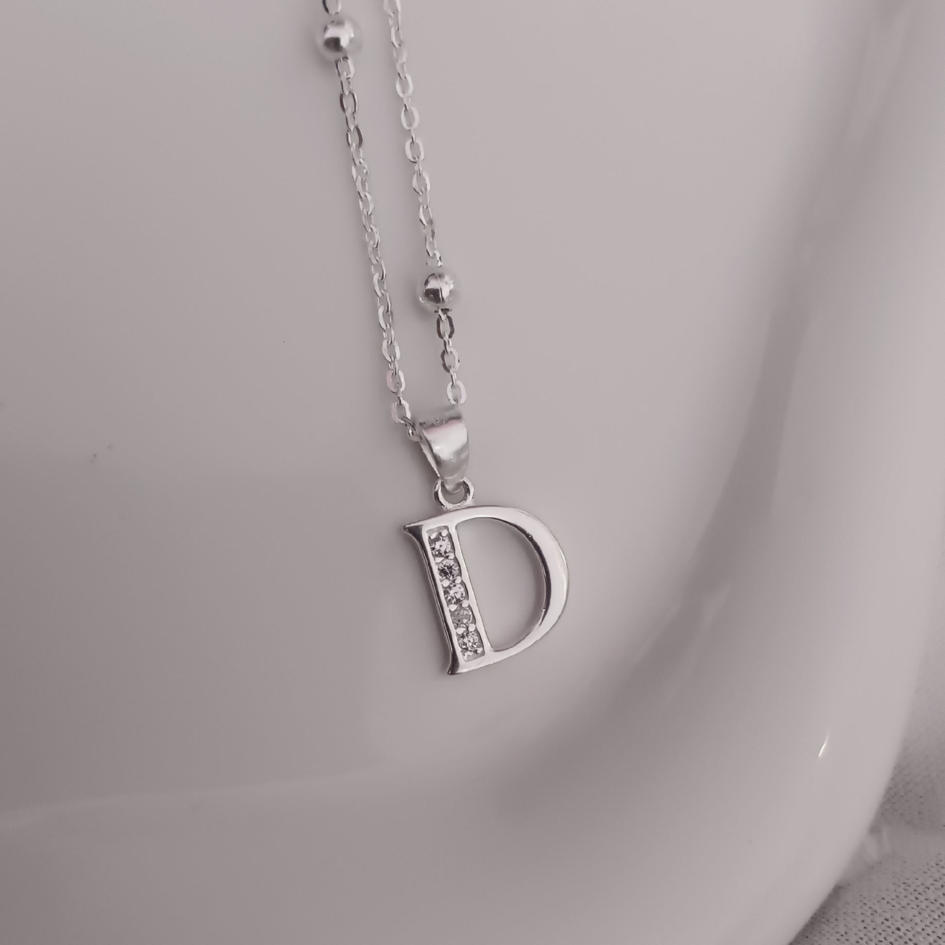 El collar letra D es parte de nuestra colección más especial, pensada para acompañarte con significado. Hecho en Plata 925 y adornado con finos circones brillantes, este collar es perfecto para regalar o para llevar siempre contigo esa letra que tanto representa.