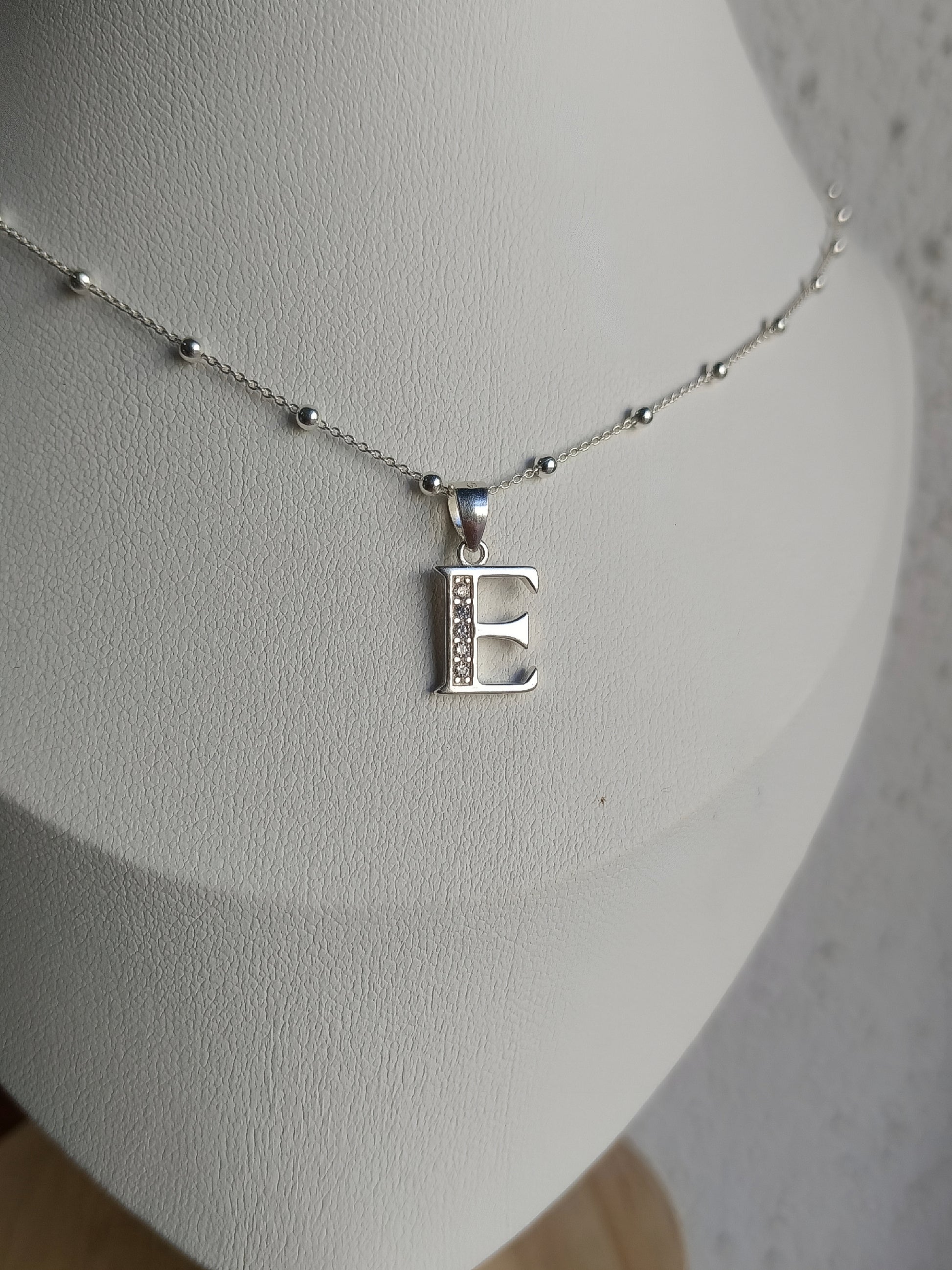 El collar letra E es parte de nuestra colección más especial, pensada para acompañarte con significado. Hecho en Plata 925 y adornado con finos circones brillantes, este collar es perfecto para regalar o para llevar siempre contigo esa letra que tanto representa.