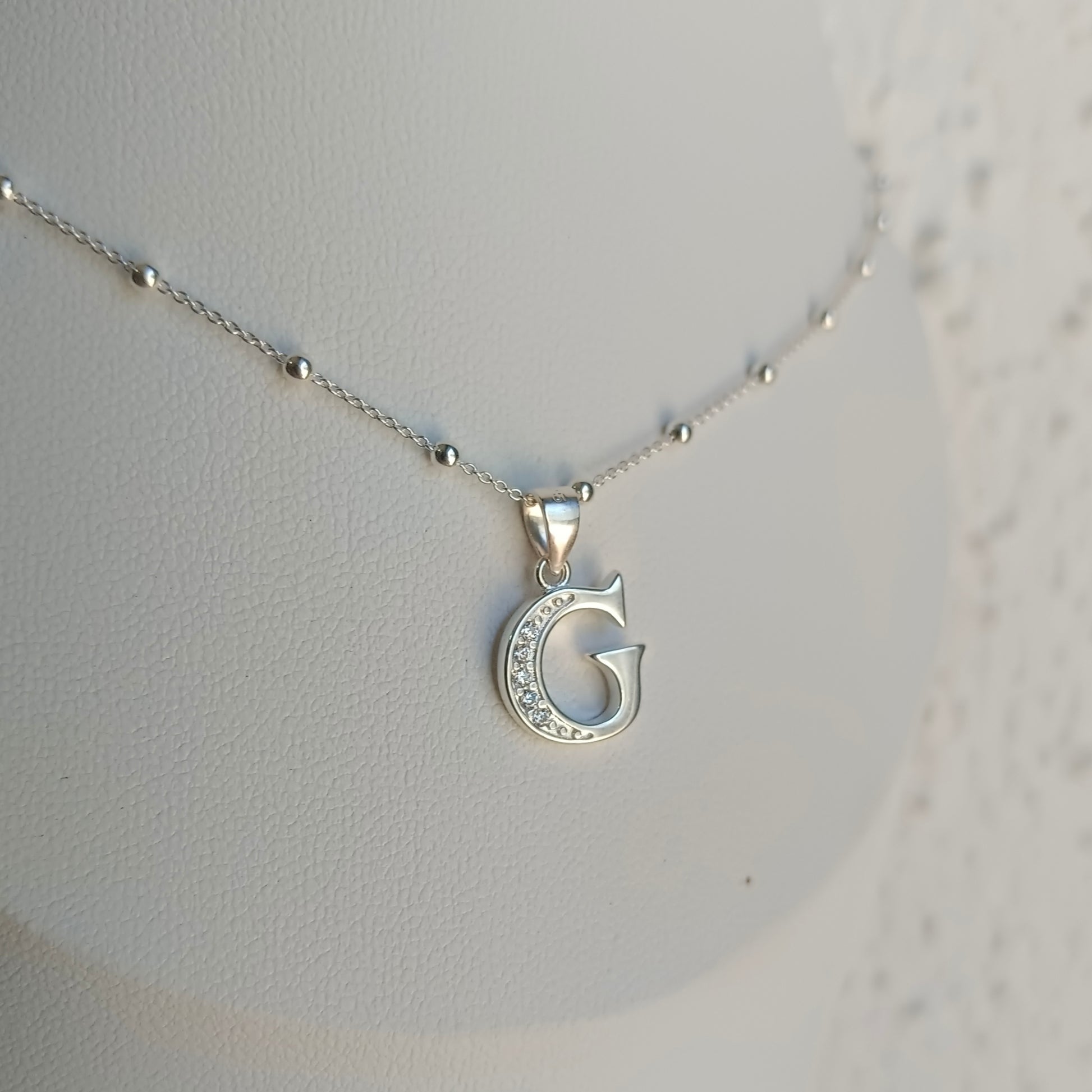 El collar letra G es parte de nuestra colección más especial, pensada para acompañarte con significado. Hecho en Plata 925 y adornado con finos circones brillantes, este collar es perfecto para regalar o para llevar siempre contigo esa letra que tanto representa.