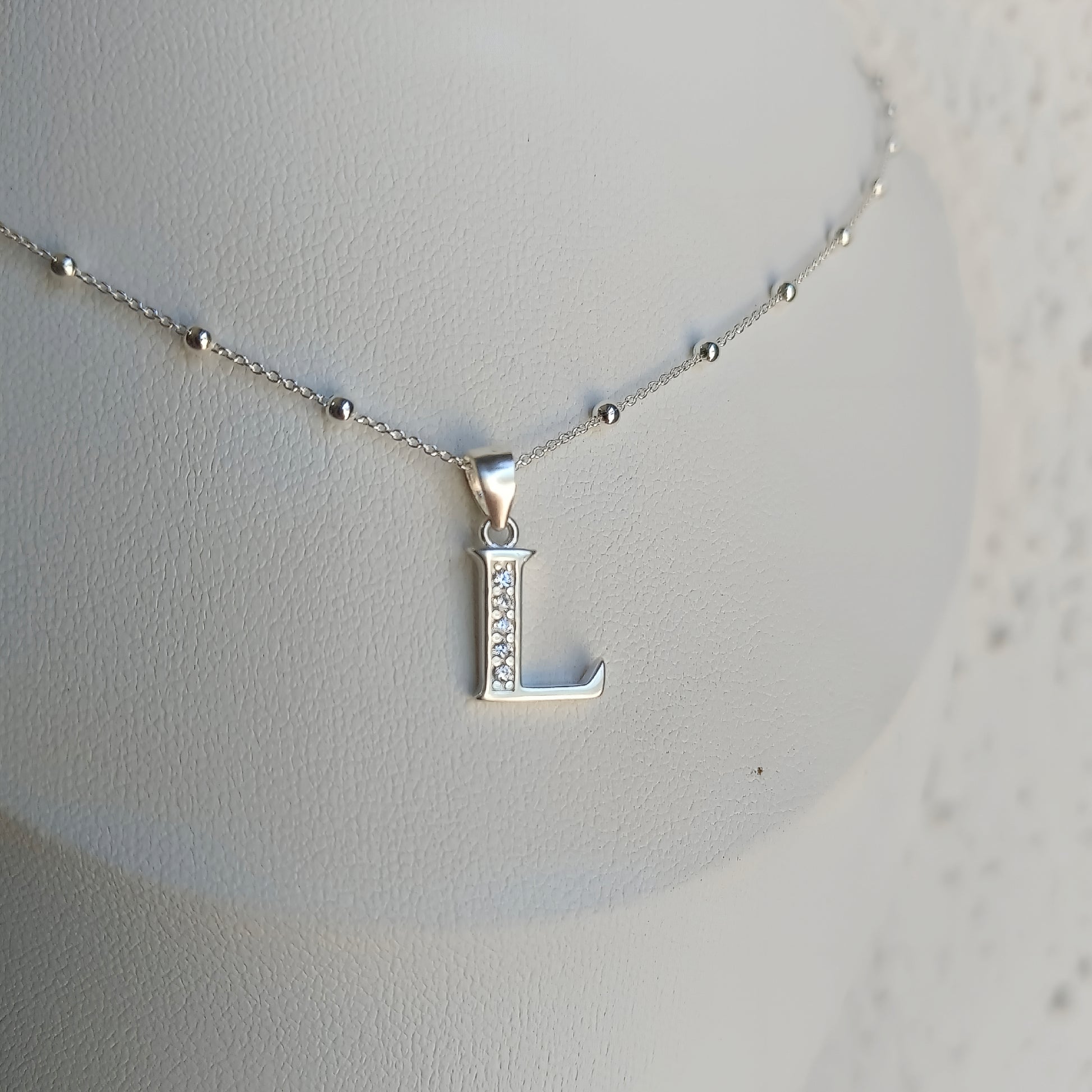 El collar letra L es parte de nuestra colección más especial, pensada para acompañarte con significado. Hecho en Plata 925 y adornado con finos circones brillantes, este collar es perfecto para regalar o para llevar siempre contigo esa letra que tanto representa.