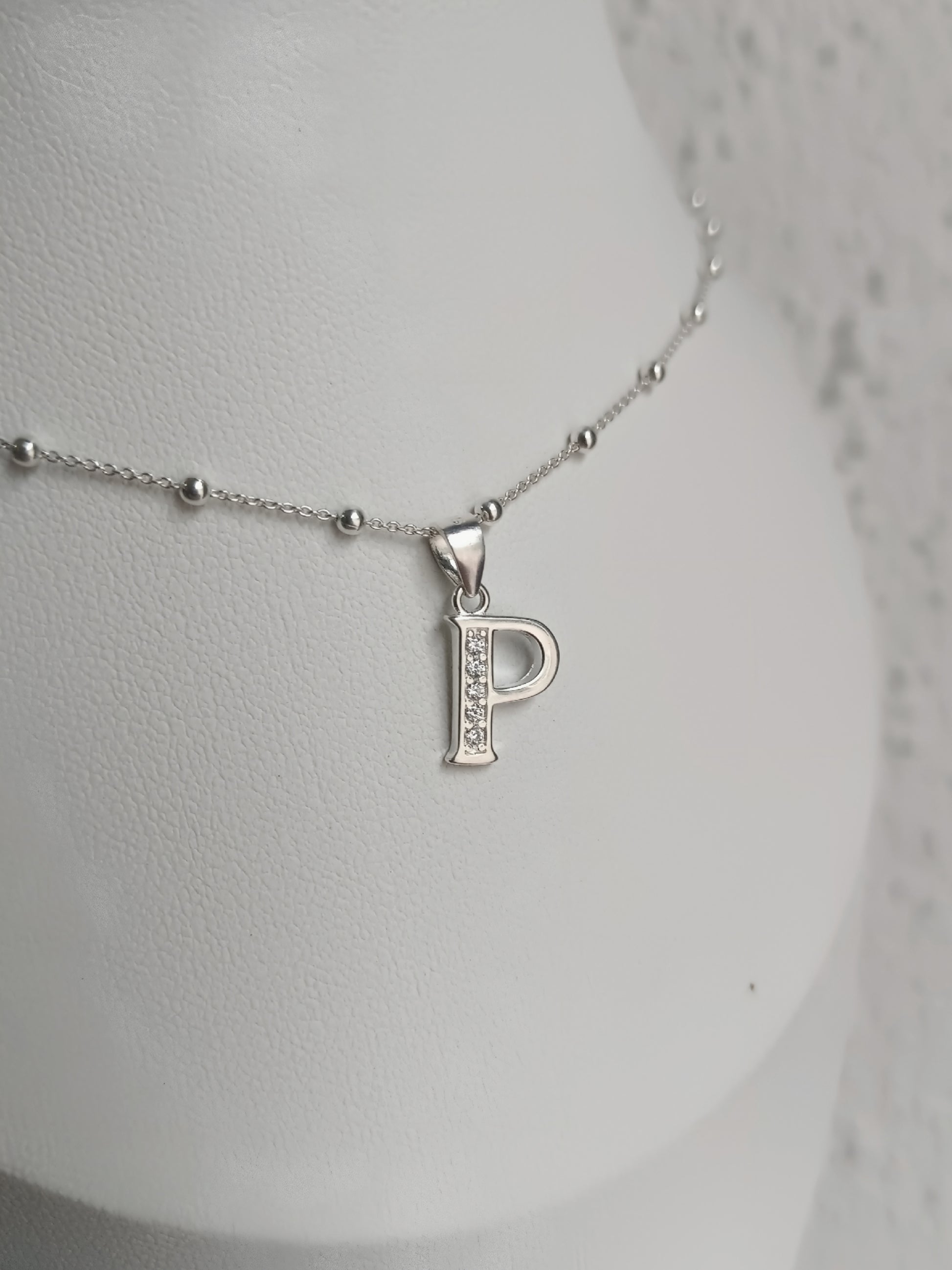 Collar Inicial P - Plata 925 y circones