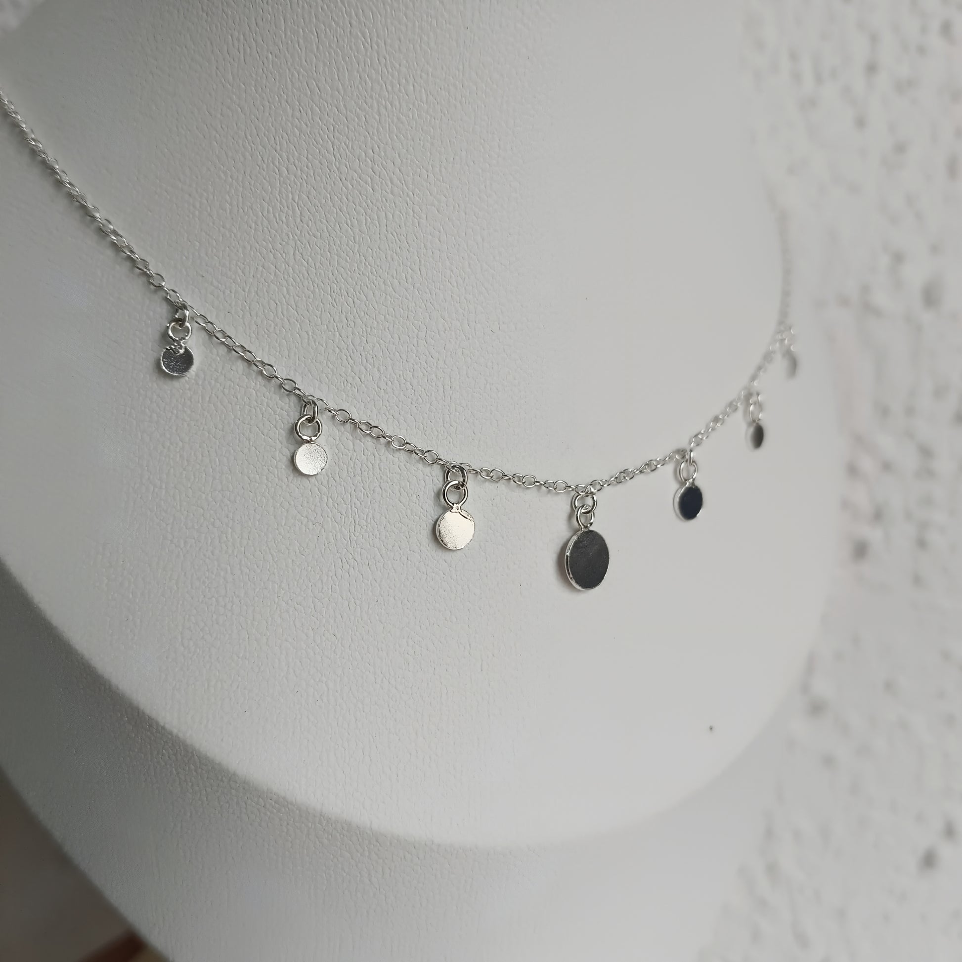 Diseño delicado y con movimiento. Pequeñas moneditas que brillan sutilmente con cada gesto. Ideal para uso diario o layering.