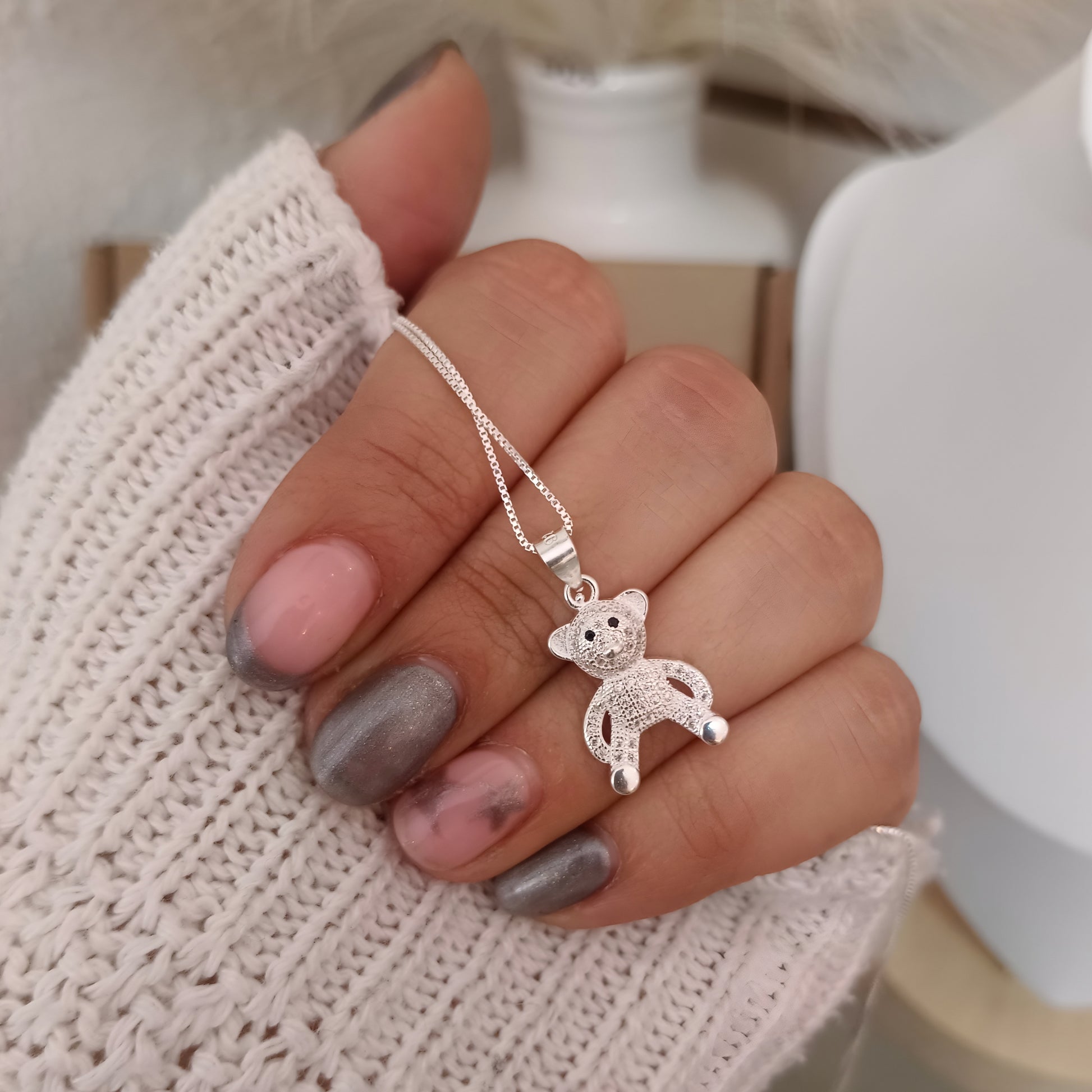 Un detalle lleno de ternura 💕. Nuestro collar de osito en Plata 925 es perfecto para acompañarte día a día con un brillo sutil y un diseño encantador. Ideal para regalar o llevar contigo como un símbolo de cariño y dulzura.