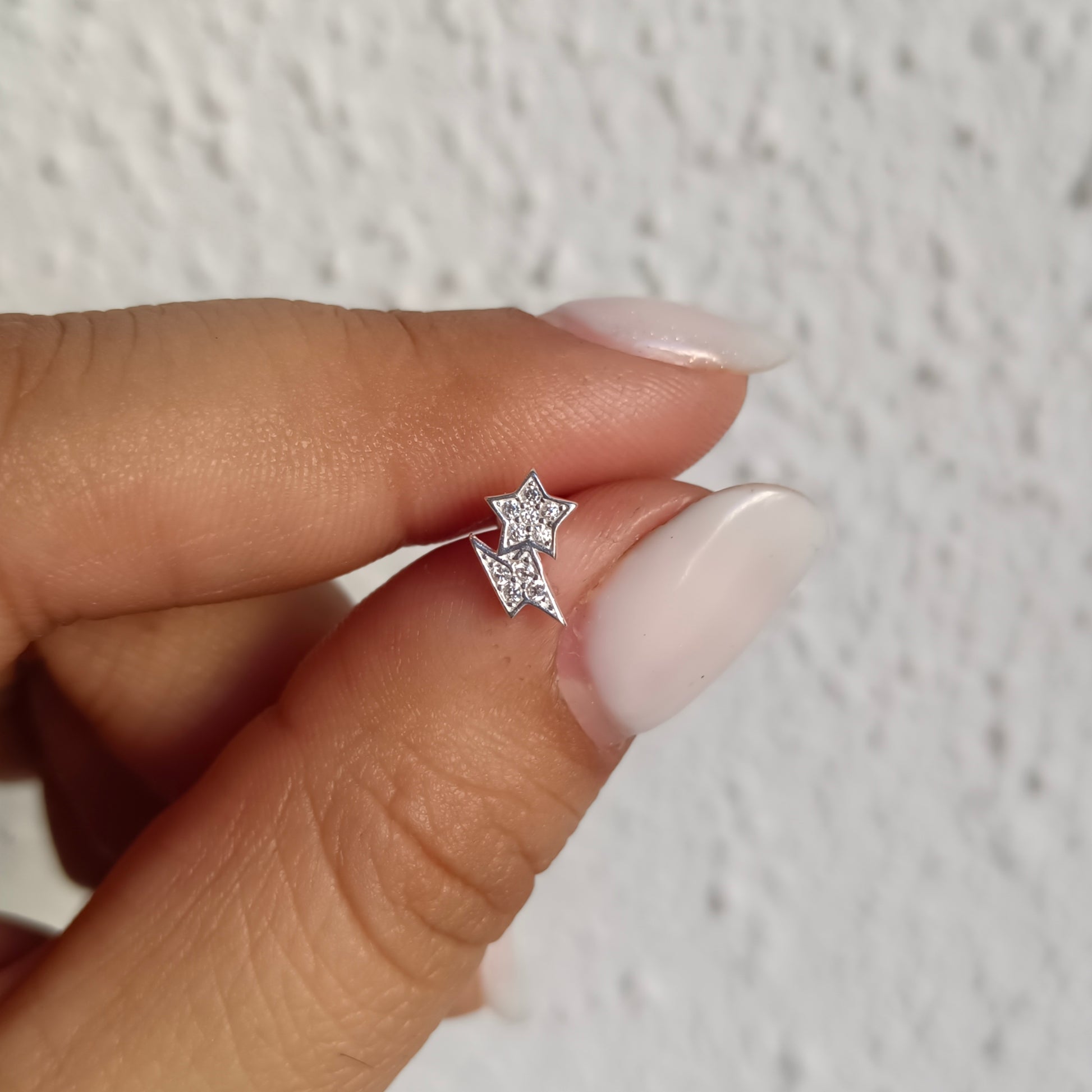 Piercing con tope plano para oreja en Plata 925, diseño rayo y estrella con circones brillantes. Perfecto para darle un toque de luz y estilo a tu look diario.