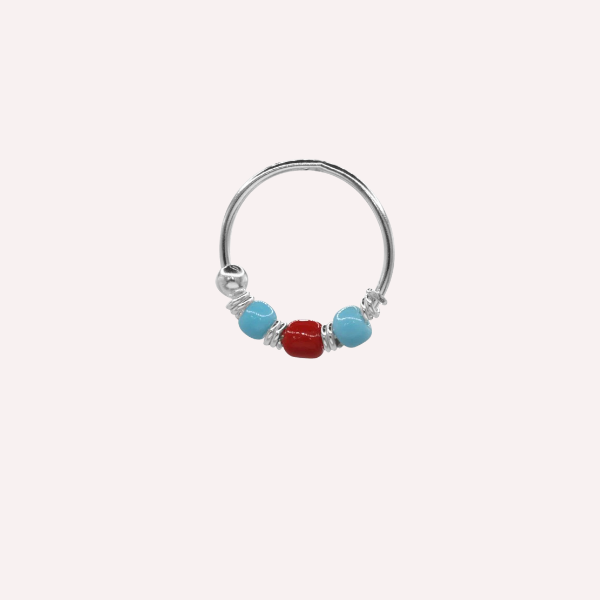 Piercing mostacillas turquesa y rojo - Plata 925