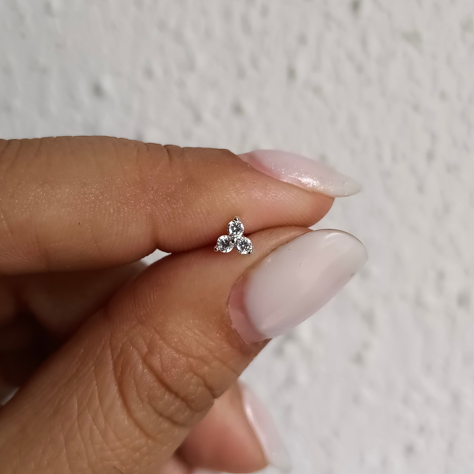 Piercing con tornillo para oreja, diseño de Pétalos con circones en Plata 925. Un toque sutil y femenino para resaltar tu estilo.
