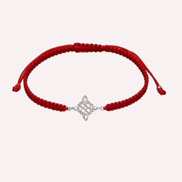 Pulsera de hilo rojo con nudo de bruja en Plata 925, símbolo de protección y energía positiva.